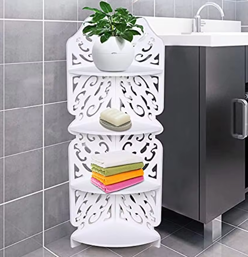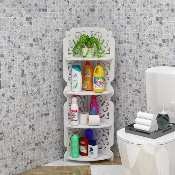 Простий та універсальний кутовий стелаж для ванної кімнати й туалету заощаджує простір, забезпечує швидкий доступ до речей, допомагає тримати їх у порядку та додає естетичності приміщенню.